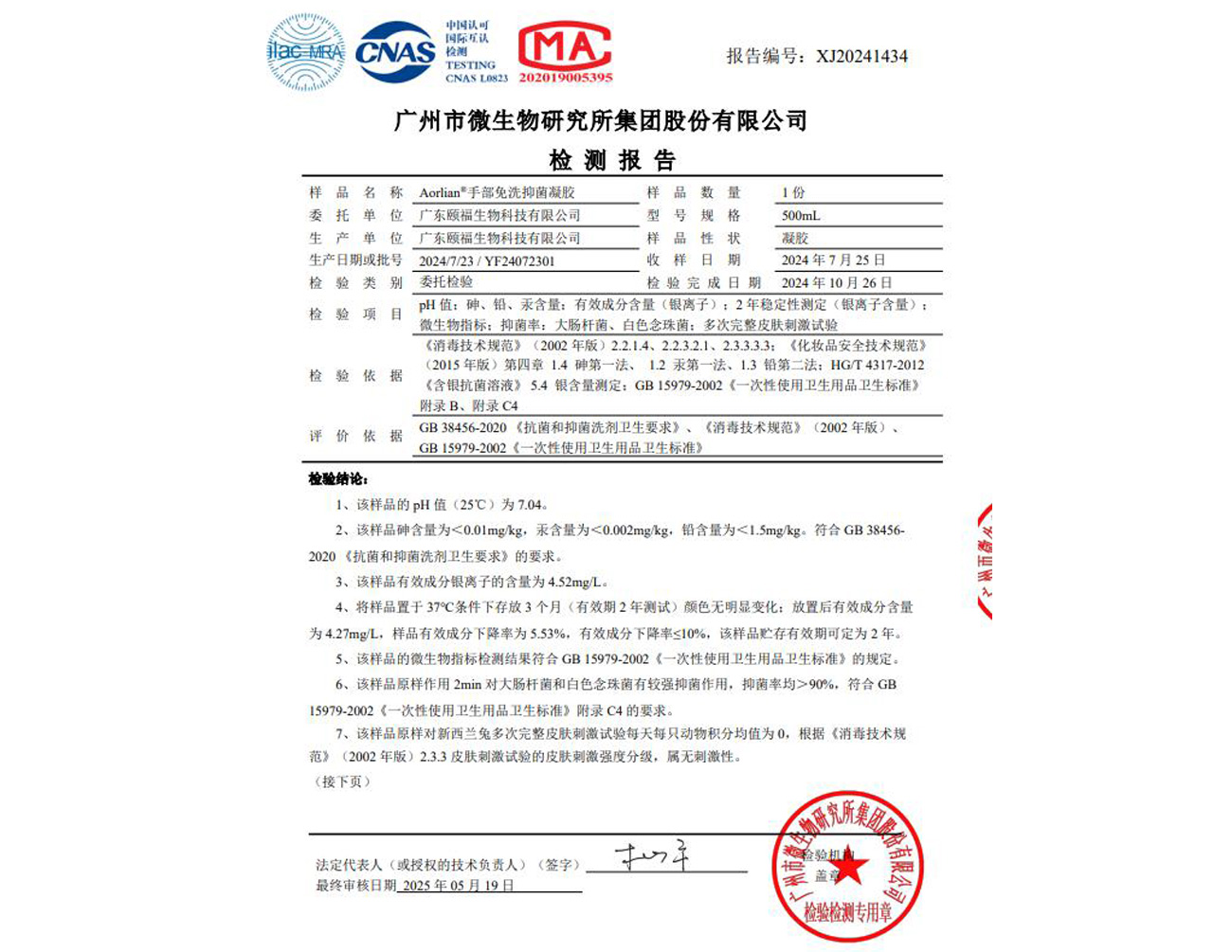 • 手部免洗抑菌凝膠檢測報告