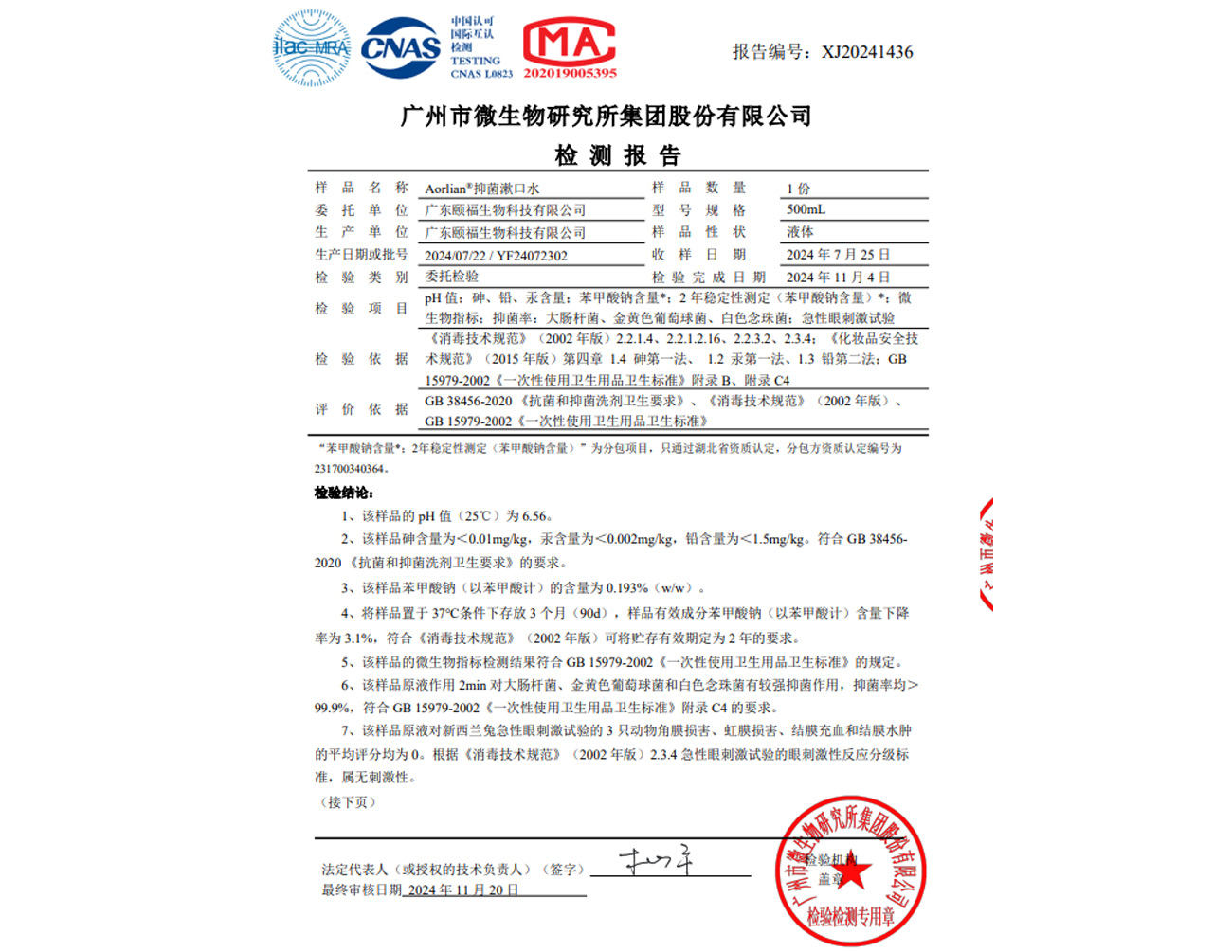• 抑菌液 報告
