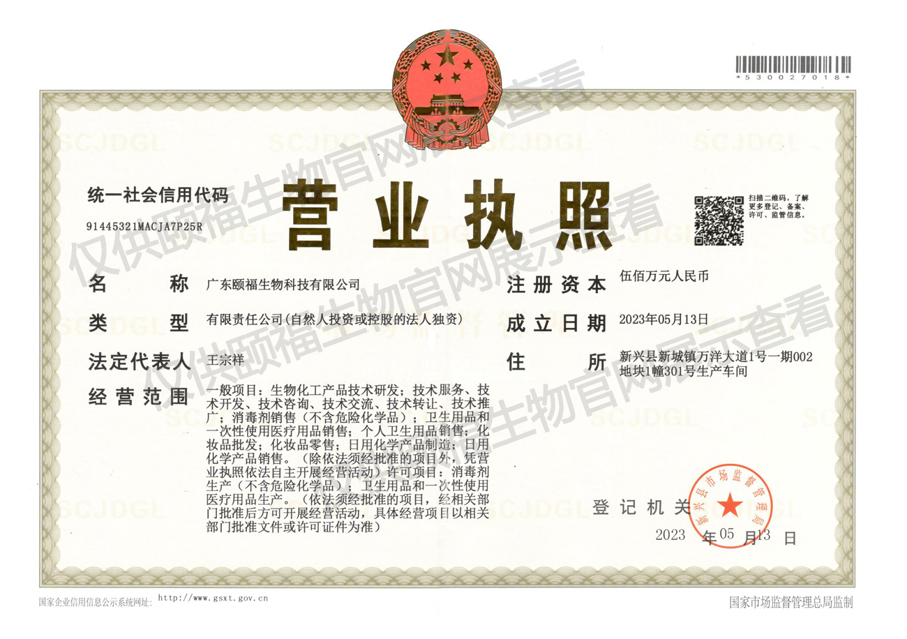 • 廣東頤福生物科技有限公司營業執照